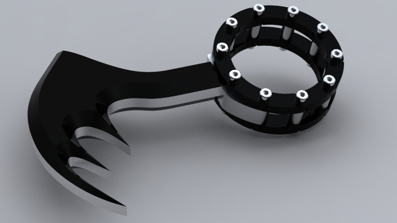 Chrome cap screws are used to keep this "link" ring wrapped around the front forks. Rubber strips will be used for a non-slip grip. |
